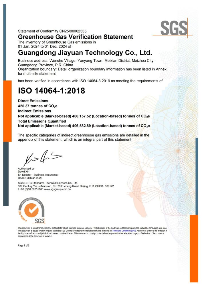 ISO 14064-1:2018温室气体核查声明