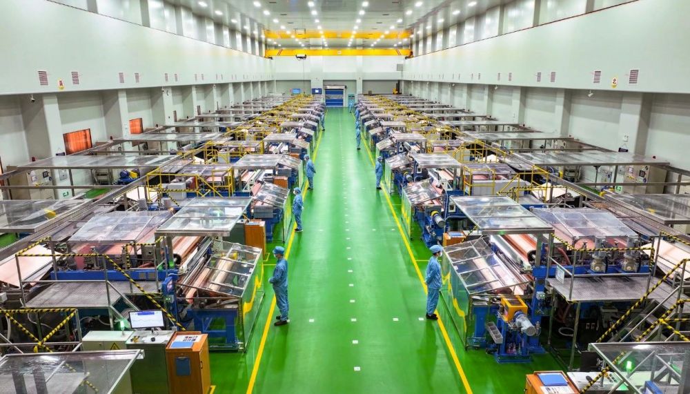 近日,走进best365英国体育在线梅县区雁洋总部的锂电铜箔无尘生产车间,多条生产线同时开机运转,随着一台台生箔一体机卷轴缓缓转动,一张张薄如蝉翼的铜箔沿着阴极辊滚卷而出;身着防尘服的技术人员正仔细核对着各项数据,产品合格下线后,再经分类、分切、包装等工序,最后打包入库,随时准备发往全国各地。